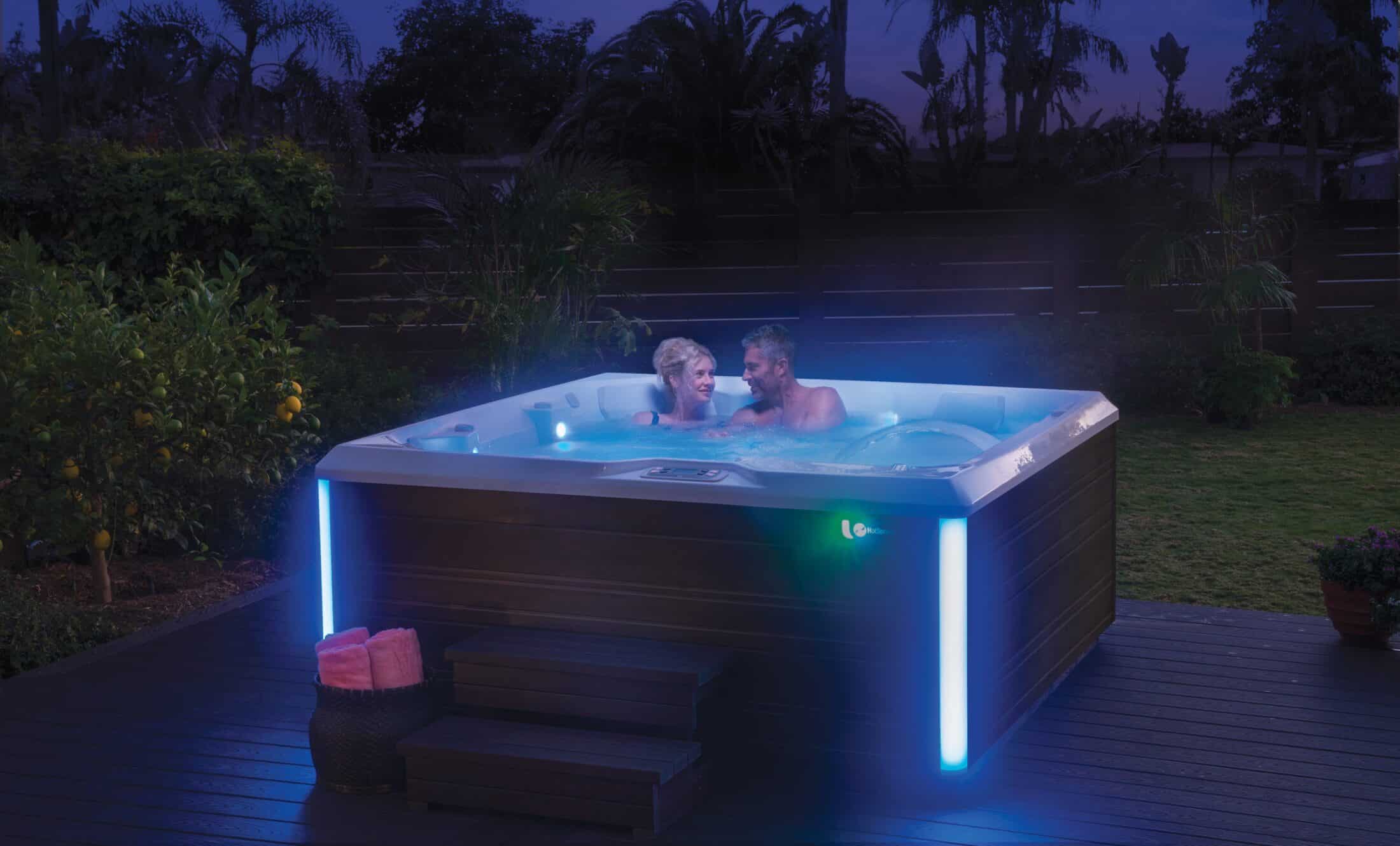 Das Kommunikationszentrum. Der Limelight Flair ist die goldene Mitte dieser Produktserie. Vier Massagesitze und eine komfortable, ergonomische Liege machen den Whirlpool zum Allround-Star. Wie bei allen Modellen der Serie können sie das prächtige Raio-Farbenspiel, den Vidro-Wasserfall und viele weitere Extras genießen. Perfektion erlangt der Flair durch Integration des optionalen Limelight Soundsystems.